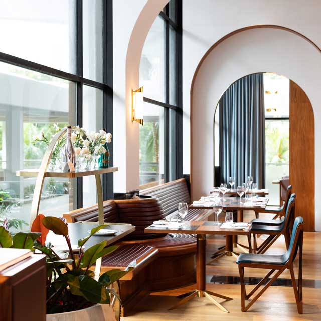 В ресторане Shang Palace, удостоенном звезды Мишлен, подают блюда кантонской кухни, в ресторане The Line и баре-ресторане NAMI — блюда интернациональной и японской кухни, в ресторане Waterfall Ristorante Italiano — блюда традиционной итальянской кухни, а в пекарне ShopHouse by Shangri-La — выпечку ручной работы. В лобби-лаундже отеля Shang-ri La готовят блюда местной кухни.